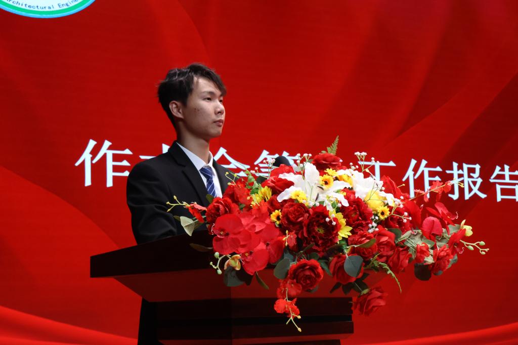 在换届大会中,马冠华书记为伟德国际1946bv官网第四届团总支、员工会副书记及主席团颁发了聘书。同时,马冠华书记等领导、老师对第四届干部颁发聘书及对新任员工干部进行授牌,各部门第四届干部为新干事授牌。新任执行主席周宏茂与上任执行主席王恒进行会旗交接仪式。