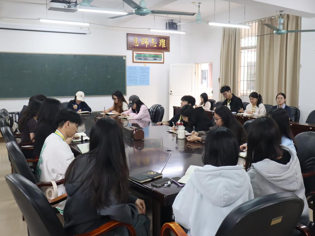 (通讯员:李湛)3月23日晚,为全面加强伟德国际1946bv官网团总支、员工会的组织建设,进一步提升员工干部团队的综合素质与向心力,确保下学年各项工作高效、有序推进,伟德国际1946bv官网团总支、员工会本学期第5周干部例会于9栋306会议室顺利召开。院团总支书记陈丽冰、副书记兼监察委员杨瑛琦、执行主席兼文体委员冯芷瑶、执行主席兼组织委周宏茂、执行主席兼宣传委员陈美梁出席本次会议,副部以上员工干部参加。