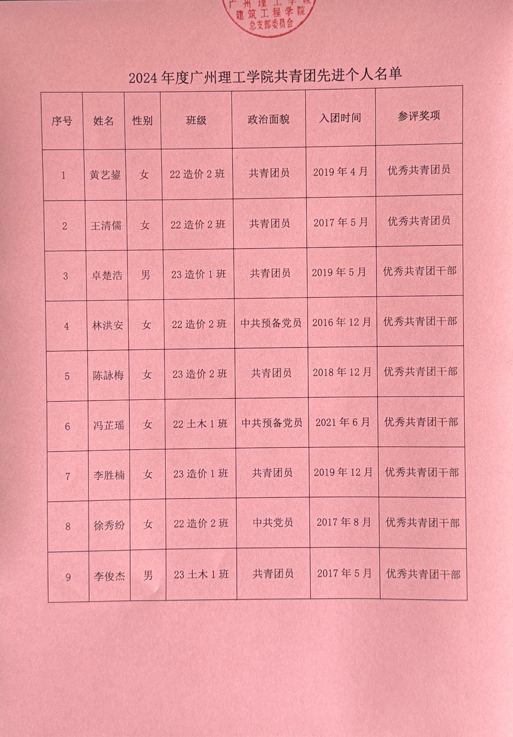 关于拟推荐黄艺鋆等2名同学为优秀共青团员、卓楚浩等7名同学为优秀共青团干部的公示