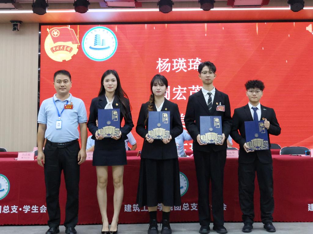 在聘书颁发环节,马冠华书记为第五届团总支副书记及主席团成员颁发聘书;陈丽冰书记为团总支干部颁发聘书;邢禄建老师为员工会干部颁发聘书。