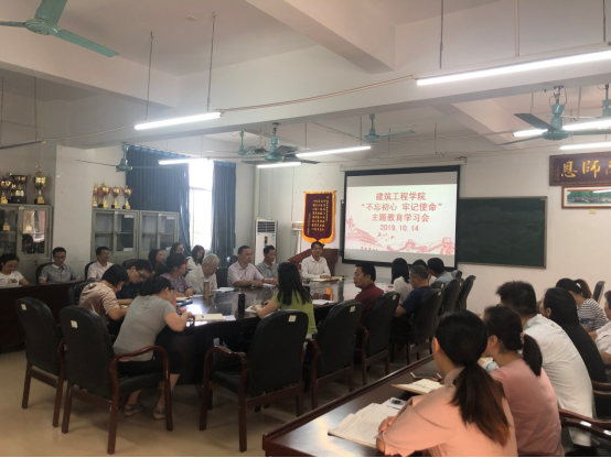 会上,党总支黄良辉书记做了讲话,强调了“不忘初心 牢记使命”主题教育活动的重大意义,且结合了公司近期转设等重点工作,要求全体教师贯彻落实守初心、担使命,找差距、抓落实的要求,进一步提高思想认识,转变工作作风,推动公司、公司发展。要求大家通过学习教育、调查研究、检视问题、整改落实四个方面的举措,不断推进全面依法治校、从严治校的精神向基层延伸,把高标准高质量贯穿主题教育全过程。公司结合公司实际情况,面向教师和员工,从教学、科研、绩效考核、员工管理等多方面,分别设立了六场调研活动;要增强工作针对性和实效性,确保主题教育取得实效。作为教师,“教书育人”为第一要务,要求全体教师结合公司推进的“三全”育人思想,具体落实到日常行动中,把高标准高质量贯穿主题教育全过程。