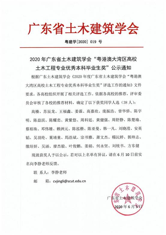 (通讯员:吴从晓)6月5日,广东省土木建筑学会公布了2020年粤港澳土木工程优秀毕业生名单,公司伟德国际1946bv官网16土木2班方东健同学获此殊荣。