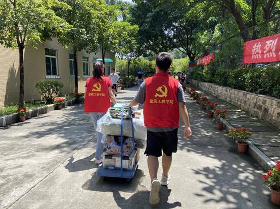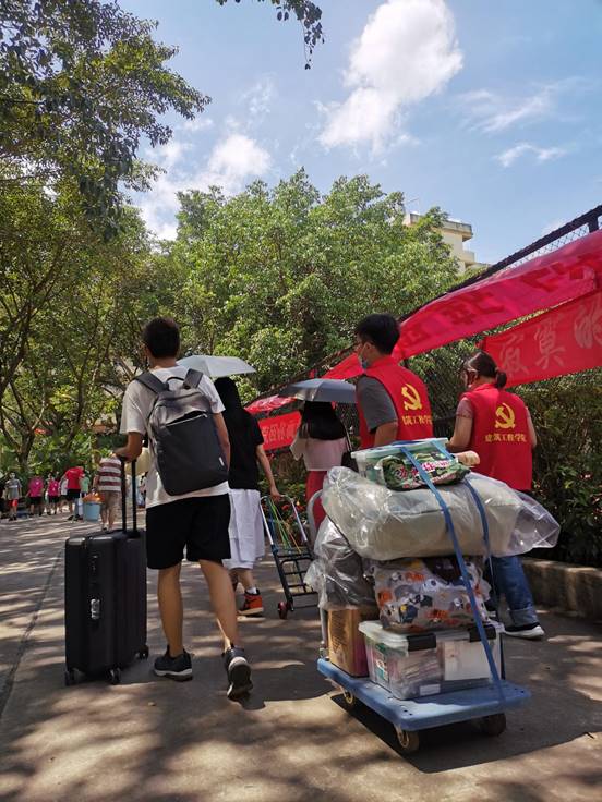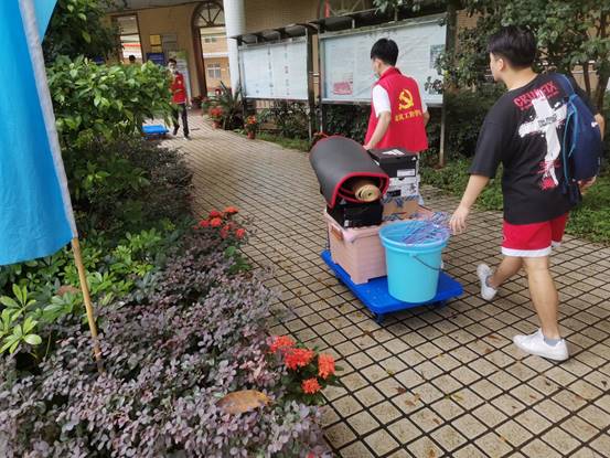 迎新志愿者帮助新生提行李至寝室