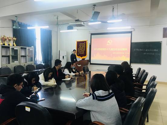 张威威书记给同学们讲述了党的十九届五中全会主要内容。他指出党始终做到“不忘初心,牢记使命”贯彻落实推进各项工作,并在脱贫攻坚、生态文明、一带一路等取得了好成绩,同时我国以人民为本,取得疫情战争胜利,使得国家下半年经济能快速恢复。同时,他还指出十四五规划是以习近平主席为核心的党中央和国家事业发展全局作出的重大战略部署。身为青年人的我们,应根据国家发展方向,思考个人发展方向,响应国家的战略部署。
