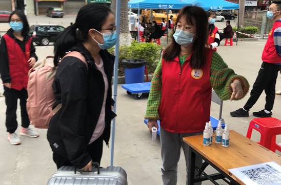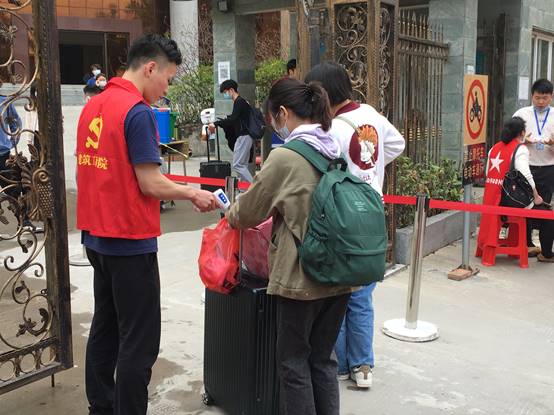 校门是校园疫情防控狙击线的关键点,也是校园健康安全防线的第一线。根据校防疫小组的安排,公司师生党员志愿者在公司西门入驻检查岗,严格检查师生粤康码和今日校园进校码,测量体温,帮忙返校员工搬运行李,在冷冽的初春校园里忙碌着,汗水湿透了衣服。在校园防疫第一线,师生党员都争先往前,勇担重任,牢记“疫情就是命令,防控就是责任”。