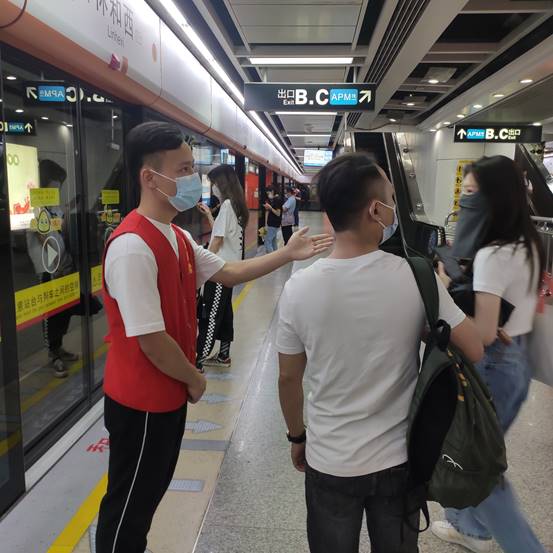 (通讯员:陈嘉豪) 5月22日公司员工党支部组织入党积极分子、党员共29位同学,在林和西站和广州东站开展以“弘扬志愿者精神,为现代交通献一份力”为主题的广州地铁志愿者活动,旨在贯彻落实“全心全意为人民服务”的宗旨、加强“坚持以人民为中心”的思想,强化“学党史、悟思想、办实事、开新局”主题党史学习。