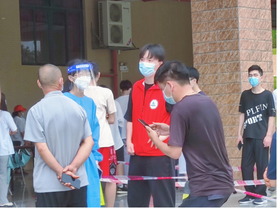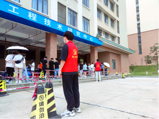 坚守初心使命,彰显党员担当。志愿者们秉持着全心全意为人民服务的宗旨,为现场进行检测的师生和医护人员提供帮助。他们走在前头,干在实处,让党旗飘扬在战“疫”的第一线,也飘扬在人民群众的心中,传递着战“疫”中鼓舞人心的力量。