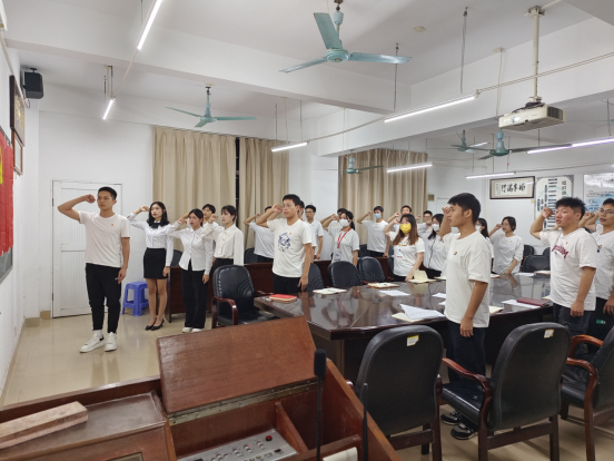 三名发展对象依次就自我介绍、对党的认识、入党动机和日常表现等方面向支部大会汇报自己在成为发展对象以来的情况,总结自己各方面的进步与收获,反思自己的不足并表示会积极改正,同时表明自己向党组织靠拢的决心。在发展对象汇报完毕后,培养联系人发表意见,党员同志就发展对象作出的汇报提出异议。与会党员随后对发展对象是否符合预备党员条件进行讨论,经过无记名投票,会议一致同意接收林彦驰、欧桃妍、魏婉珊三位同志为中共预备党员。在确定三名发展对象转为预备党员后,元锦涛同志带领全体党员同志面对党旗进行庄严的入党宣誓。