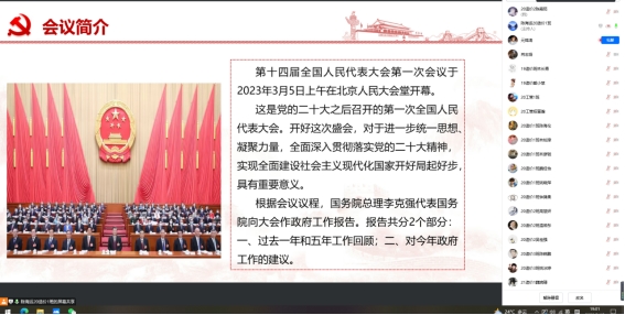 (通讯员:林灿濠)3月15日晚,为使同志们及时学习、领会两会精神,全面深入贯彻落实党的二十大精神,公司员工第一党支部组织全体党员在线上学习2023年《政府工作报告》,陈海运同志主持。