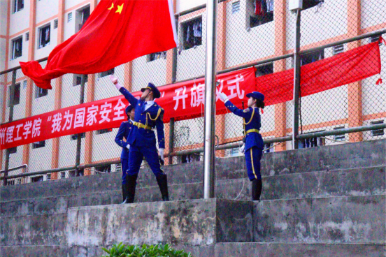 仪式在庄严的国歌声中拉开帷幕,在升旗仪式上,党委人民武装部部长陈朝阳结合我国当前面临的安全威胁与我们的日常生活,通过深入浅出的阐述,向同学们介绍何为国家安全。他希望同学们能够树立国防观念和忧患意识,深刻理解和把握总体国家安全观,做新时代合格的老员工青年,共筑维护国家安全的钢铁长城。