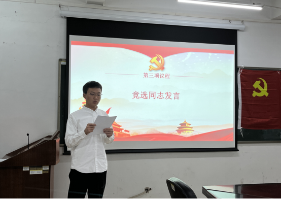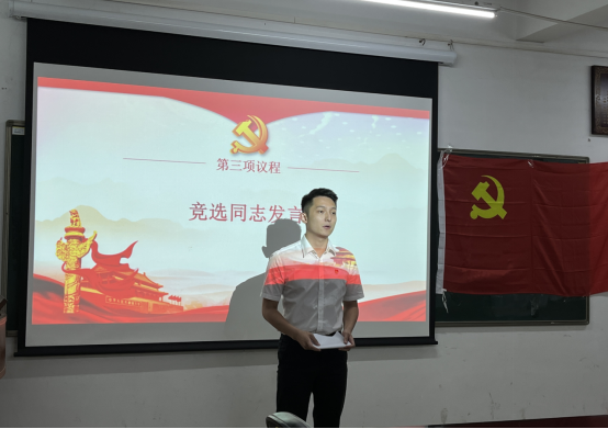 大会在庄严的《义勇军进行曲》歌声中开始。会上,肖志扬同志代表上届支部委员会作工作报告,客观总结了过去一年员工第一党支部的各项工作。紧接着,由肖志扬同志宣读了本次支部委员竞选的条件及选举办法,6名参与竞选的同志依次进行发言。姚晓萍、陈锐鹏、张广超、元锦涛、钟旖柔、吴桂强6名竞选同志根据自身实际情况,分别从工作、学习、生活及思想等方面进行演讲。