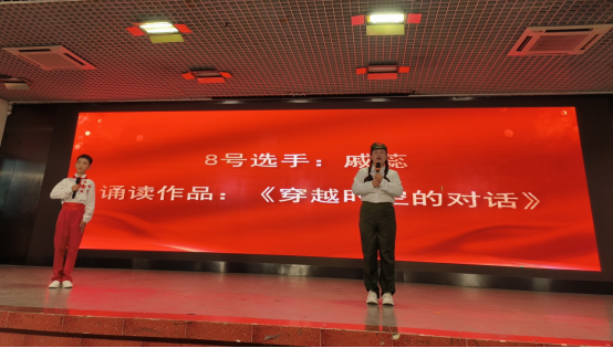 此次校级决赛设有自我介绍、经典诵读、即兴演讲三个环节,评分标准主要考察语音语调、仪容仪表、舞台表现、作品创新性。在诵读中戚蕊老师精神饱满,吐字清晰,真情演绎,富有感染力,深深打动了在场的观众,赢得观众们热烈的掌声。