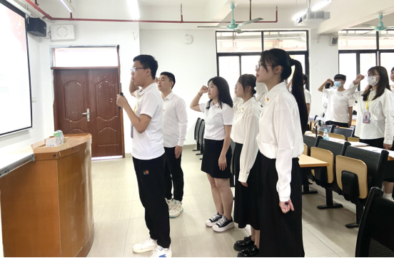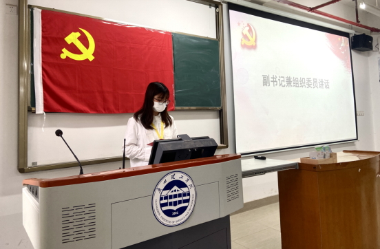 宣传委员陈锐鹏同志带领全体党员进行庄严的入党宣誓。同时他希望同志们在以后的工作学习中,能够加强政治理论学习,以优秀党员的标准来严格要求自己,努力工作学习,及时向组织汇报思想,为建设和谐美丽校园做出自己的贡献。副书记兼组织委员姚晓萍同志讲话,她对四名发展对象顺利转为预备党员表示祝贺,并对他们提出了寄语和希望,同时也告诫与会党员要在躬身自省中实现正心修身、以身作则。