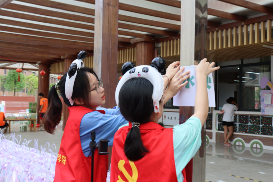 志愿者们提前到达并协助老师们布置活动现场,志愿者们秉持“奉献、友爱、互助、进步”的志愿服务精神,在工作中团结协作,配合默契,热情高涨,干劲十足,充分展现了不怕脏、不怕累、不怕苦、敢于冲锋在前、敢于勇挑重担的精神风貌。