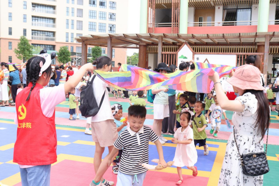 活动在热情高涨中拉开帷幕,志愿者们积极主动地引导家长们进场签到并维持秩序,活动开始老师们用一支精彩的开场舞,给小朋友们送上了一份特别的节日问候与祝福。在亲子游戏和游园活动中,老师和志愿者们在不同摊位为小朋友们服务,不仅为家长和小朋友搭建了一个互动的桥梁,促进了感情交流,更营造了一个欢乐、祥和又温馨的节日氛围。志愿者们亲切细致的引导、真诚温暖的笑容,收获了家长们和老师们的一致好评。