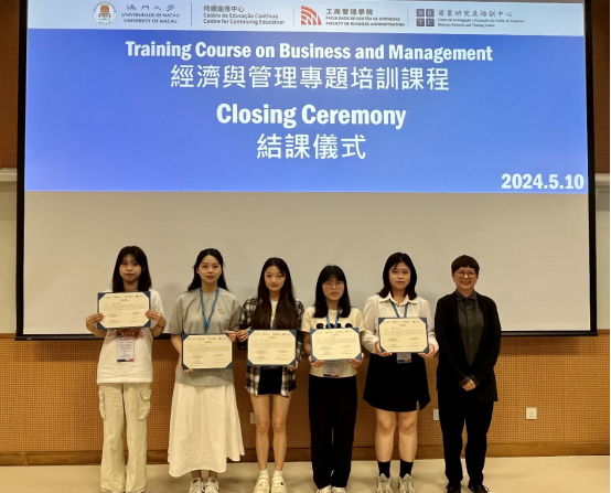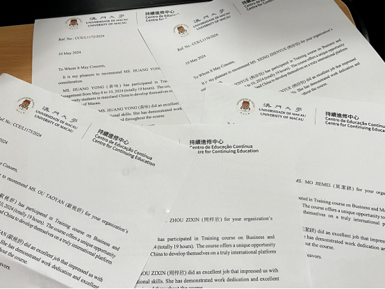 公司学子获澳门大学研修结课证书