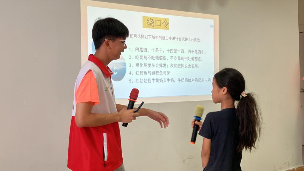 活动伊始,“坡笑”清澜实践团为在场的小朋友们准备了一段“请讲普通话”的启发性教育视频,让他们深刻地意识到说好普通话的重要意义。接着,实践团成员胡东星以扎实的语言功底和热情洋溢的讲解,全方位、多角度地展示了普通话的重要性,并表达了期望。经过认真学习与练习,实践团成员与小朋友们携手并进,共同进行了精彩纷呈的趣味游戏环节。通过参与“词语接龙”、“绕口令挑战”、“寻找错别字”、“汉字猜谜”等趣味游戏,不仅巩固了所学知识,还激发了他们的学习兴趣。