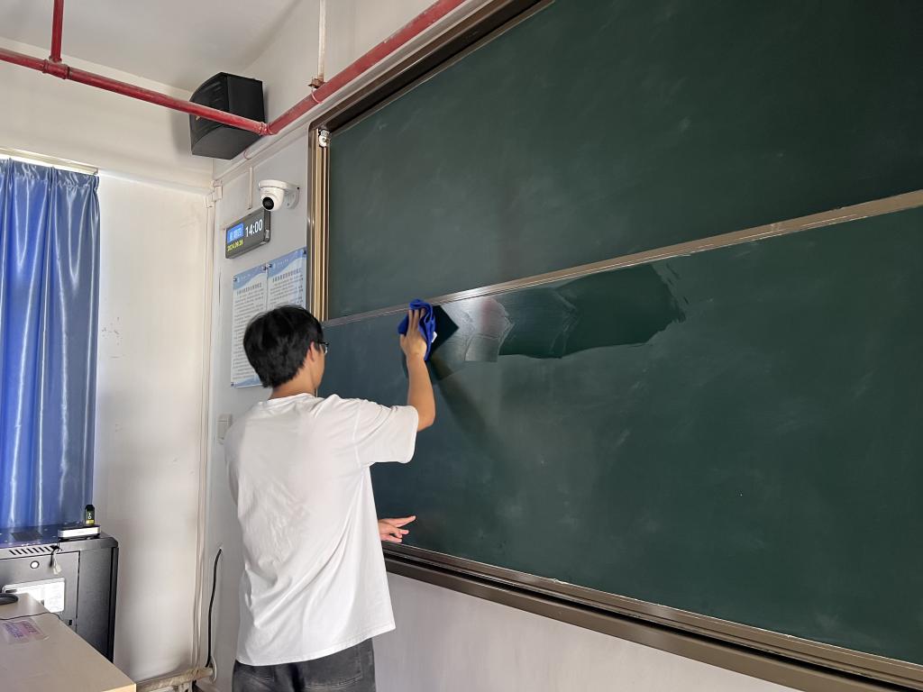 志愿者擦拭黑板