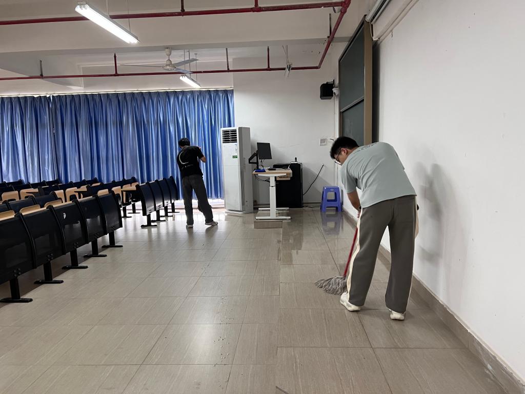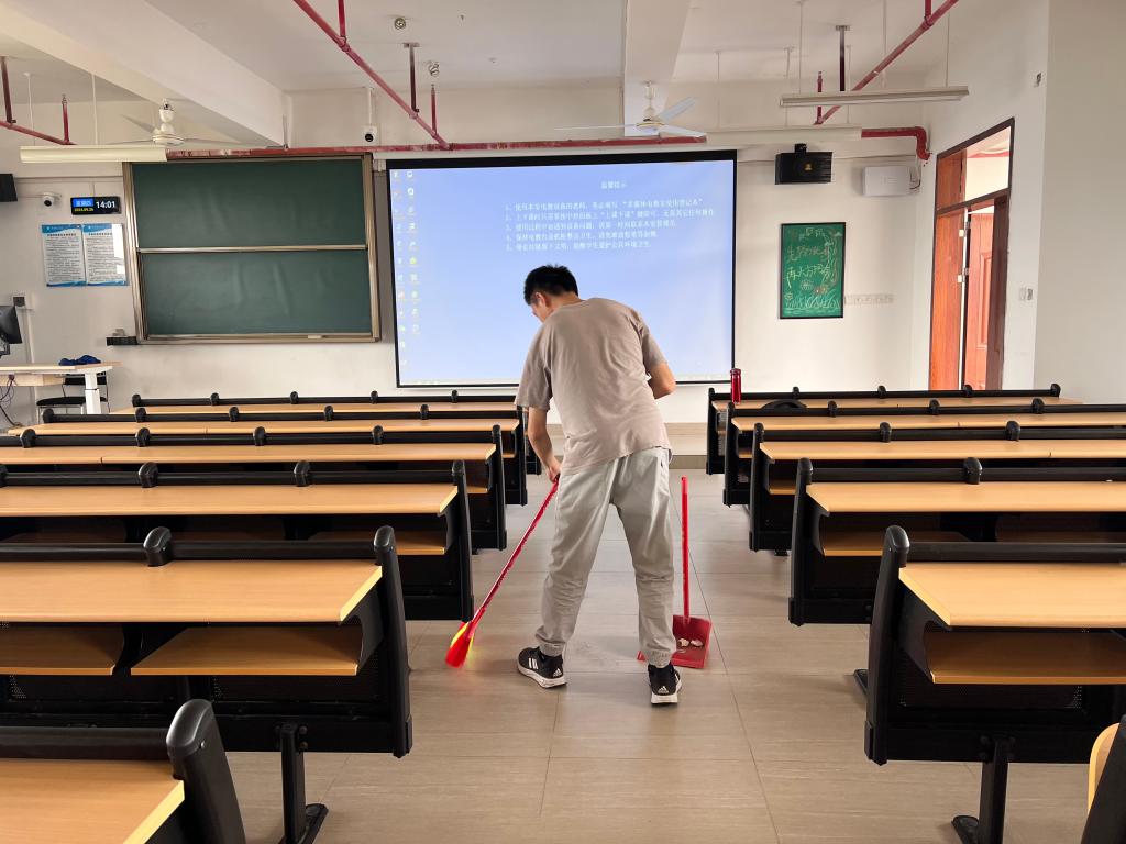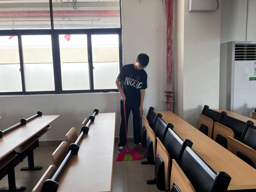 志愿者打扫教室