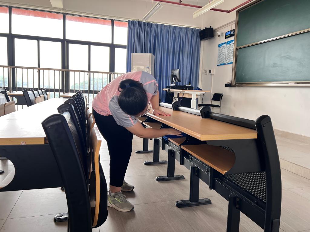 志愿者清洁桌椅