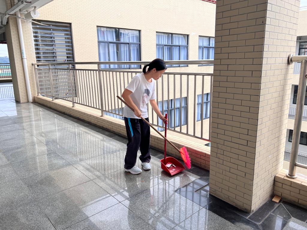 志愿者打扫教室走廊