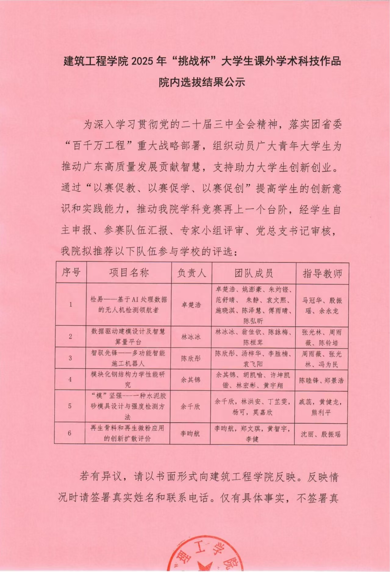 伟德国际1946bv官网2025年“挑战杯”老员工课外学术科技作品院内选拔结果公示