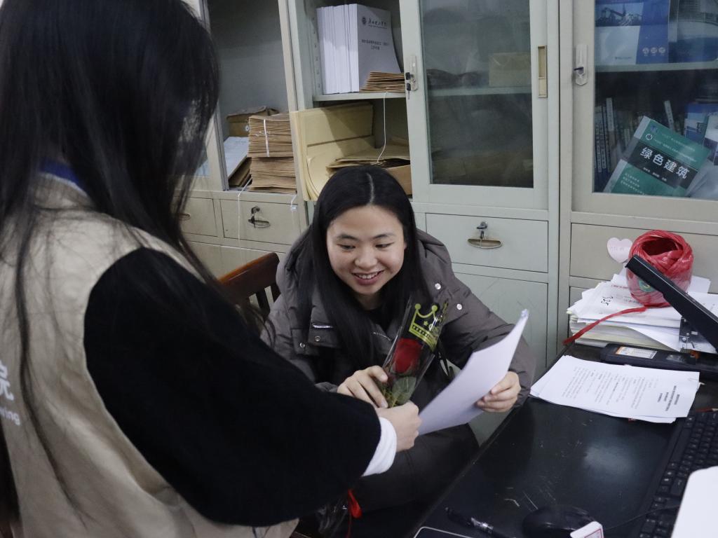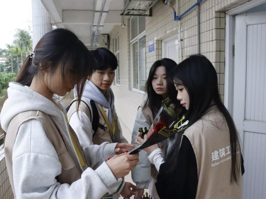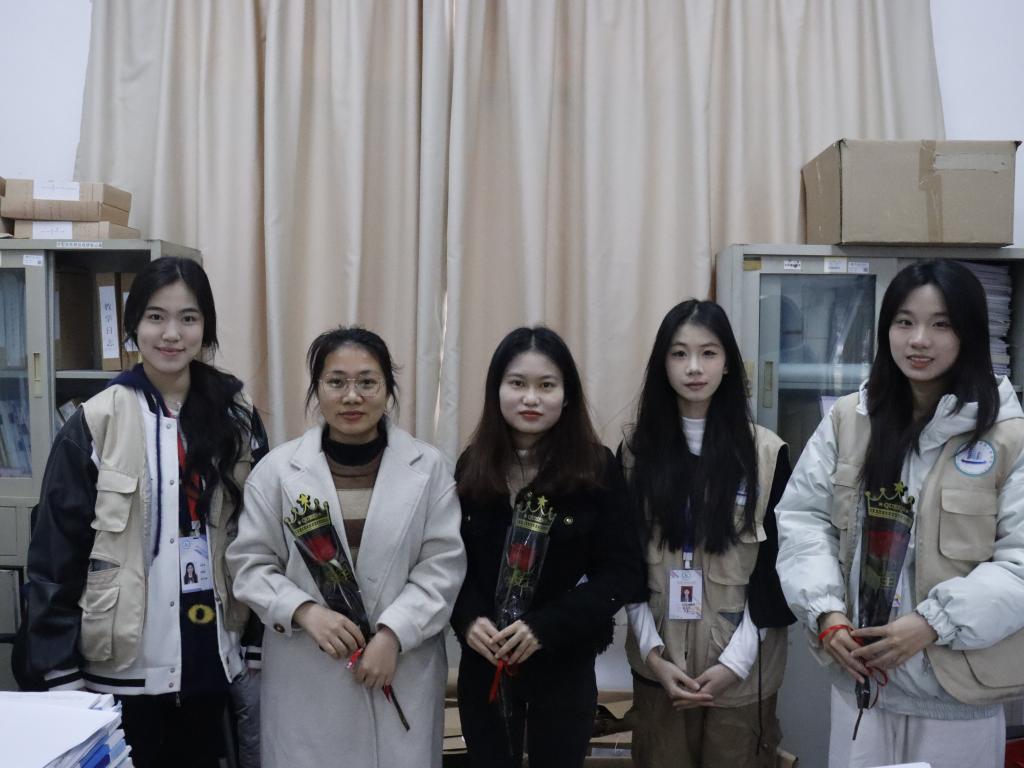 活动伊始,院员工代表早早来到现场,手捧着精心准备的鲜花和礼物,带着真诚的微笑,步伐轻快地踏入九栋教学楼教师办公室,开启这场温暖的节日献礼。员工代表们将鲜花逐一送给女教师们,并送上一句句真挚的“妇女节快乐”,这真诚的话语和娇艳的花朵,瞬间让女教师们的脸上绽放出灿烂的笑容,校园里洋溢着一片温馨与欢乐的氛围。