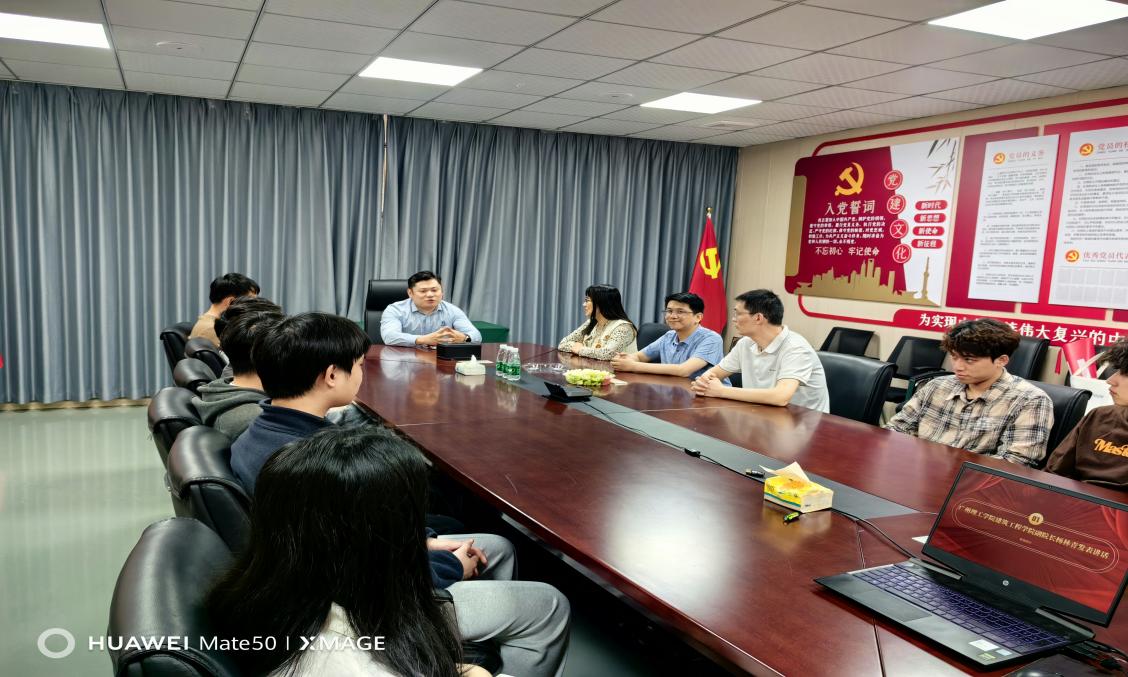 会议前,三位老师先与工位上工作的6名同学进行了简单的问询交流,同学们在就餐、住宿、实习内容等向老师们作了简短的汇报。交流会议上,广东国基检测有限公司创始人杨颖惠总经理、詹官景工程师出席会议并对老师们的到访和接下来的挂牌仪式表示热烈的欢迎。