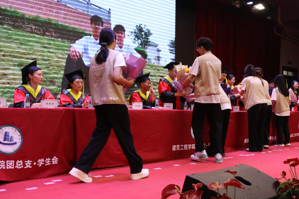 教师代表李雪平老师发言,她向全体2025届毕业生致以诚挚的祝贺和祝福,回忆起与同学们相处的日日夜夜,那些课堂上的互动、课后的答疑、实习中的指导等都成为了珍贵的记忆陪伴他们奔赴各自新征程。李老师提到建筑承载时代记忆与人们的梦想,同学们要心怀敬畏,敢于突破常规,也要注重细节,从选材到施工,精益求精。同时,面对行业中的重重诱惑,同学们务必脚踏实地,做好自己的职业规划,切勿被外界不良情绪调动,时刻保持热忱与初心。