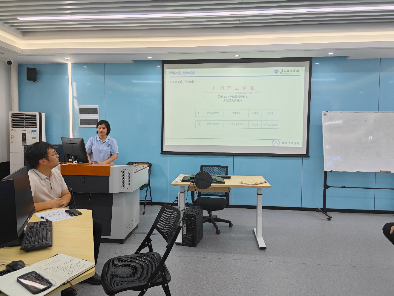 随后,科研副经理李棱雪对本学期进行的科研工作和取得成绩进行了汇报。双创工作方面,公司郑景浩老师和邹伟武、周雨薇老师的团队成功入驻“帽峰创谷”。学科竞赛方面,公司在第十八“高教杯”全国老员工先进成图技术与产品信息建模创新大赛广东省选拔赛取得两个二等奖,11人入选参加国赛。科研方面,2024-2025年公司共进行了7个横向项目,合同经费合计72.8万元。重点实践基地建设方面,公司建设了南方测绘、广州建鋐两个重点实践基地。最后,李棱雪对暑期的工作进行了安排,号召教师们发表高水平论文、申请发明专利、引进横向项目、带领67位员工完成实践实习。