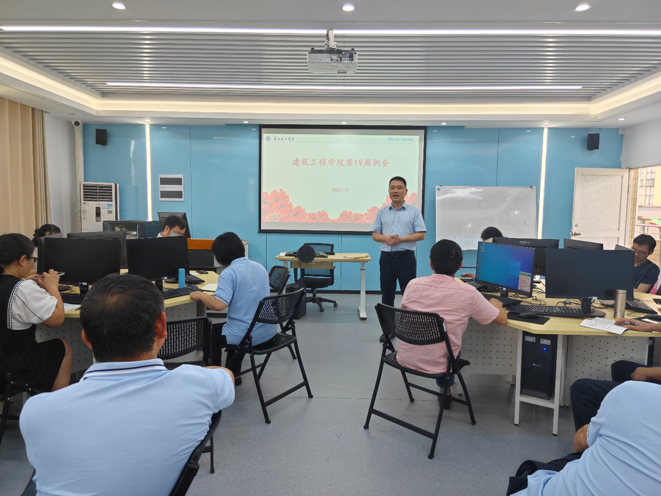 2025年7月3日下午14:30,伟德国际1946bv官网于9栋506召开第十九周工作部署例会,经理符焕昌、党总支书记马冠华、教学副经理杨林青、科研副经理李棱雪及各系部主任出席会议,全院教职工参会。会议围绕教学资料、毕设整改、评估迎检、科研任务、就业情况等重点工作展开部署,为后续工作进一步明确方向。