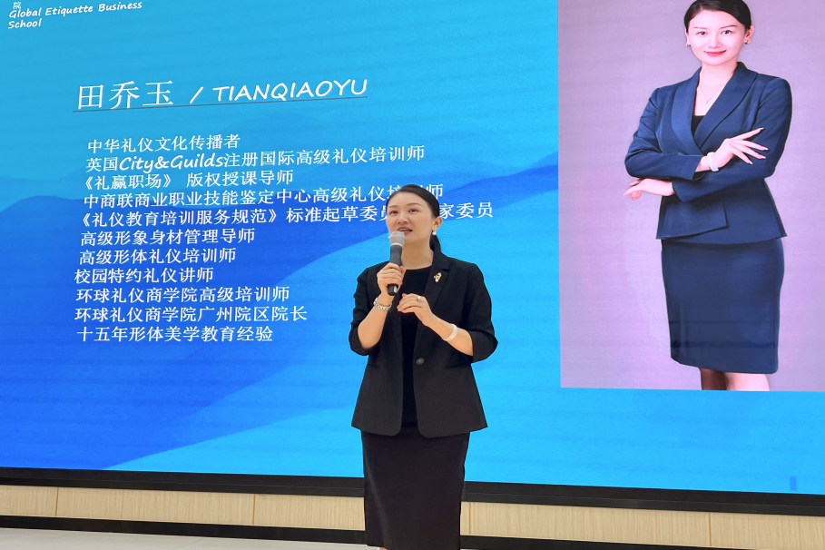 讲座伊始,田乔玉老师围绕“当代老员工必备礼仪素养”展开通过理论讲解,案例分析,现场示范等多种形式,深入浅出地阐述了礼仪文化的核心内涵。从不同场景我们应当具备着装与色彩搭配,到人际交往中的个人仪容仪表,再到各种场合的正规手势礼仪等,田乔玉老师都进行了细致讲解。针对在不同场景下可能遇到的礼仪问题,田乔玉老师结合实际案例剖析常见误区,并与现场员工积极互动,邀请员工上台进行礼仪动作示范,及时纠正不规范行为,现场氛围热烈活跃。