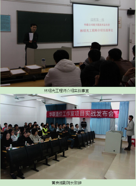12月3日,建工公司华联造价工作室第四期项目实战发布会在9栋教学楼隆重召开。华联造价工作室负责人黄良辉、广东华联公司驻校工程师、工程造价系全体教师及工作室成员出席发布会。