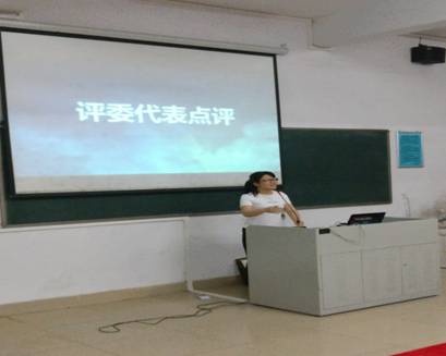 随后,张莉娜老师为竞赛做点评。她感谢台前幕后的工作人员和评委老师的辛勤付出的同时,提出以下几点建议:一是注意PPT展示的字体和演讲时间的把握;二是各组员间需加强配合;三是抓紧专业基础知识的学习。张莉娜老师也鼓励同学们积极参与课外活动,了解专业实时动态。
