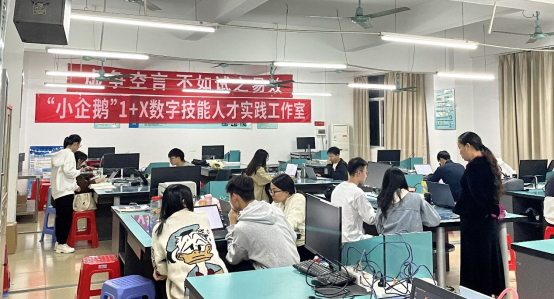 以工作室教师为主组成的各专业指导教师十余人在为期两个月的备赛期进行了三个赛项的轮值指导,11、12月的夜晚,工作室里灯火通明,同学们都在为自己的目标而不懈努力。在老师们的指导下,员工们的进步飞快,师生们的努力都在赛事成果中体现。老师不仅是知识的传播者,更是员工们心灵的引导者,不断向着更高的目标迈进。