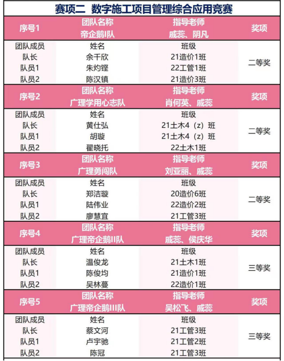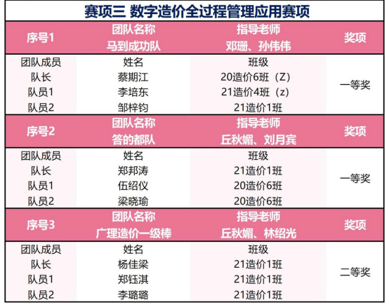 丘秋媚、林绍光老师指导“广理造价一级棒”获得了二等奖。