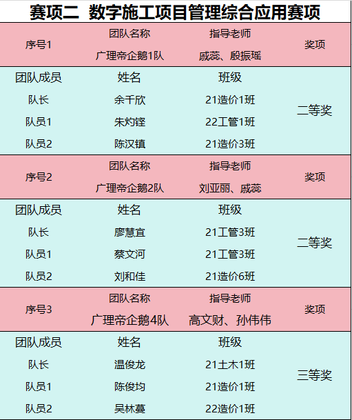 赛项二总决赛获奖名单