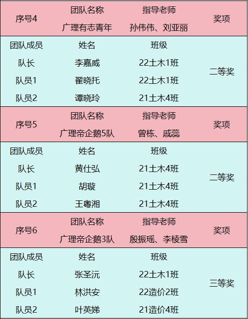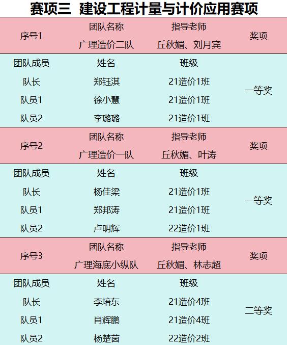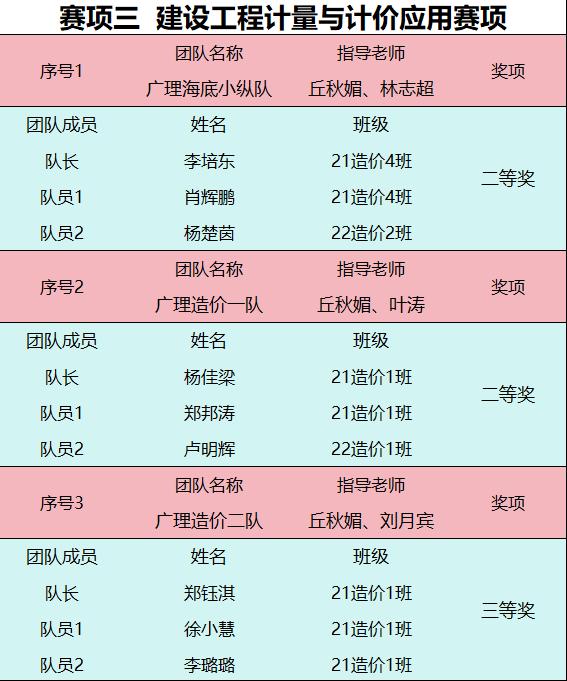 赛项三总决赛获奖名单