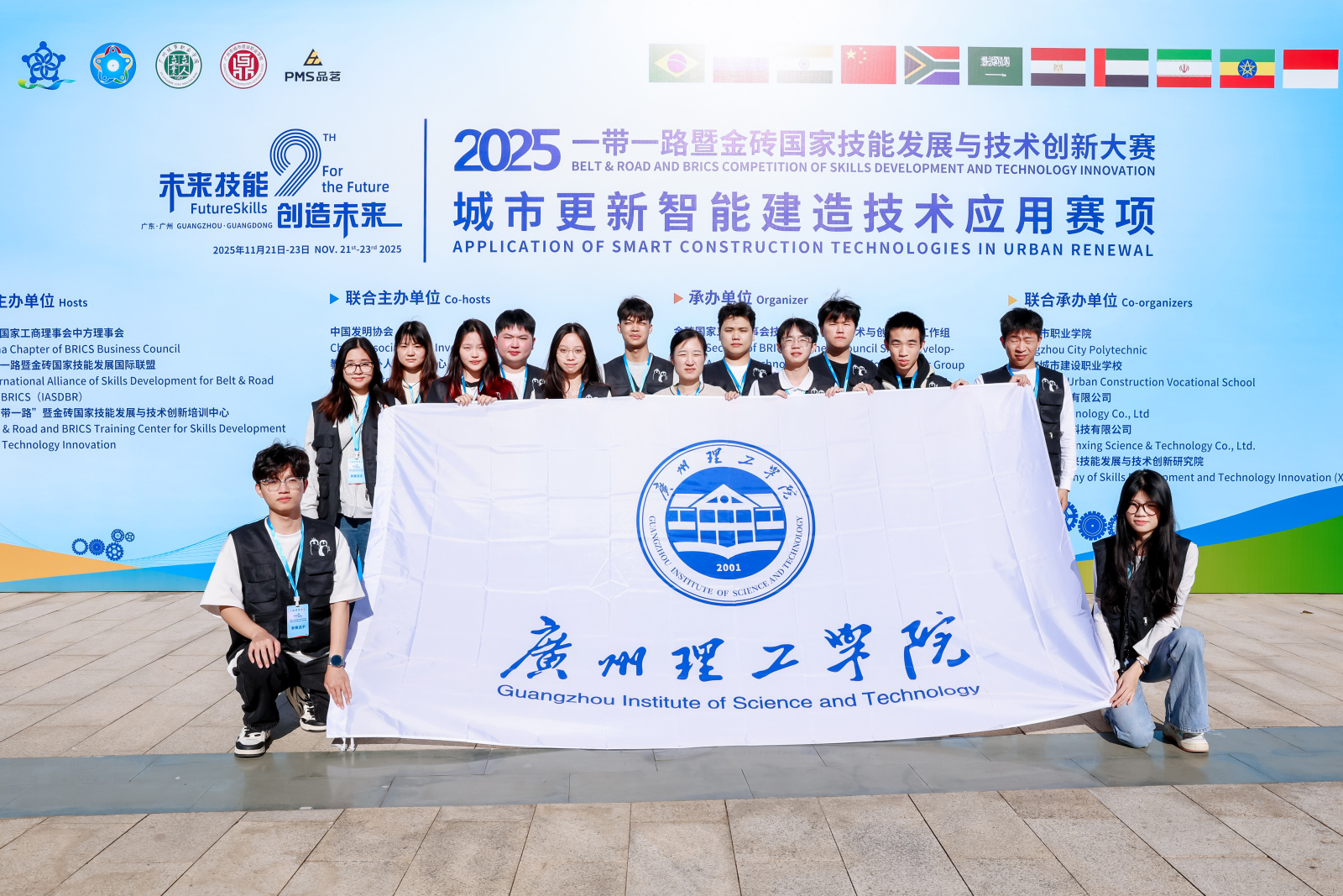 为深入贯彻落实习近平总书记关于技能人才工作的重要指示精神,积极响应金砖国家中关于技能发展工作的相关要求,通过举办城市更新智能建造技术应用赛项,实现以赛促教、以赛促学、以赛促改、以赛促建的产教融合赛事创新,有力推动人工智能产业需求与新一代信息技术的迭代发展。本次赛事由金砖国家工商理事会中方理事会主办,中国发明协会、教育部中外人文交流中心联合主办,品茗科技股份有限公司等单位联合承办,在广州市城市建设职业公司和广州城市职业公司共同举办。赛事聚焦城市更新与智能建造技术的创新应用与实践比拼,吸引了全国各地顶尖参赛队伍同台竞技,核心涵盖三大板块:BIM建模与深化;建筑机器人仿真编程系统实操(含工艺流程认知、施工模拟建造等虚拟实训内容);智能检测与监测。