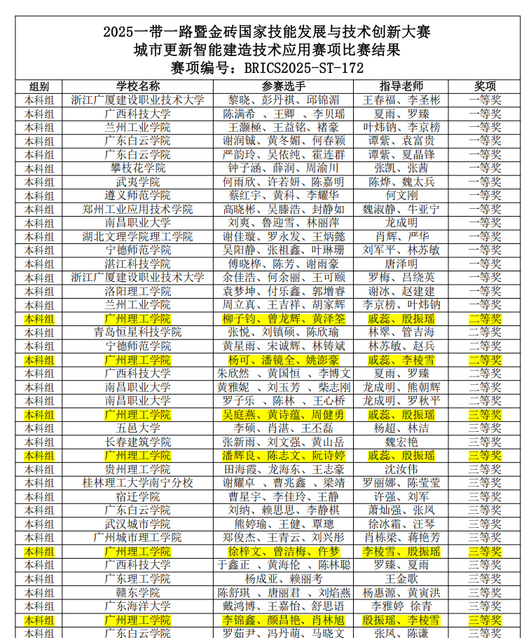 此次赛事告捷,是bevictor1946韦德官网“产教融合、协同育人”教育理念的生动实践,既彰显了公司在建筑智能化、城市更新等核心专业领域的建设成效,也展现了师生团队在技术实践与创新应用中的综合素养。未来,公司将持续深化教学改革,聚焦技术技能型人才培养,以高水平学科竞赛为重要抓手,深入践行“以赛促教、以赛促学、以赛促练”模式,在实践中锤炼师生专业本领、凝聚育人合力,为建筑业转型升级与行业技能交流合作贡献更多“广理力量”。