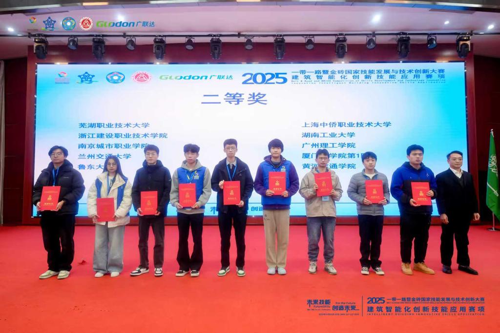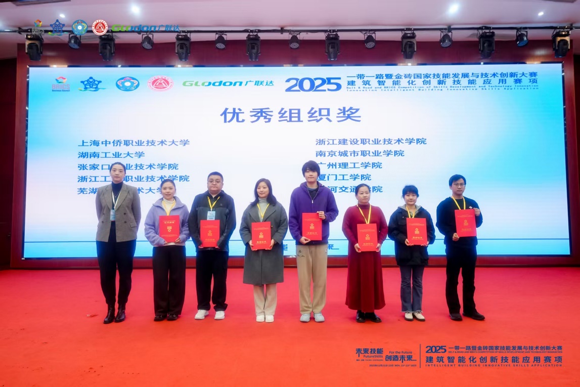 本次全国总决赛于2025年11月21日-23日在重庆工贸职业技术公司举办,由金砖国家工商理事会中方理事会、一带一路暨金砖国家技能发展国际联盟、“一带一路”暨金砖国家技能发展与技术创新培训中心主办,中国发明协会、教育部中外人文交流中心联合主办,重庆工贸职业技术公司、广联达科技股份有限公司等联合承办。赛事聚焦建筑智能化技能发展与技术创新,搭建了高水平的人才国际合作平台,吸引全国各院校精英团队同台竞技,全方位考察参赛队伍的技术实践与创新应用能力。