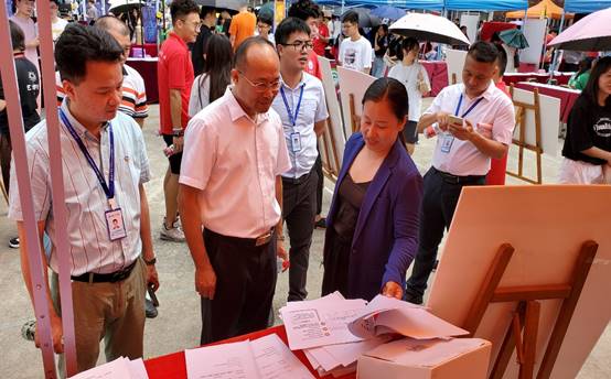 戚蕊老师向领导讲解作品