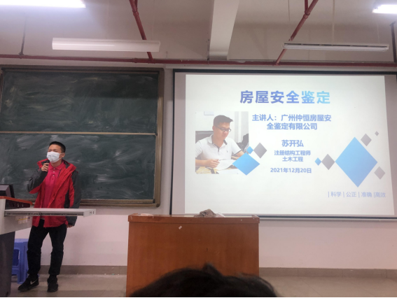 12月20日,校企合作单位广州仲恒房屋安全鉴定有限公司专家进校在13栋409室,向公司员工开展房屋安全鉴定认知培训,此次培训旨在教授同学们鉴定相关规范及操作。公司土木工程专业的师生代表、汇建检测工作室、鉴定与加固改造工作室成员参加了此次培训。