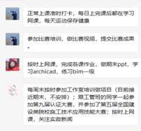 国敬工作室管理团队为广大成员及时发布公司下达的各类学科比赛通知,动员成员积极备赛,截至5月31号,本工作室除了备战BIM一级考试的成员外,其余成员均参加了公司通知各类的比赛,目前,主要备赛的项目有第五届施工技术技能大赛、第三届“建模大师”杯全国BIM建模大赛。在备赛其间,工作室成员加强与工作室创始人张国真师兄及其他工作室的联系,不断通过在线会议等方式提升专业技能。