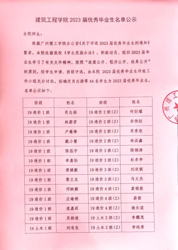 伟德国际1946bv官网2023届优秀毕业生名单公示