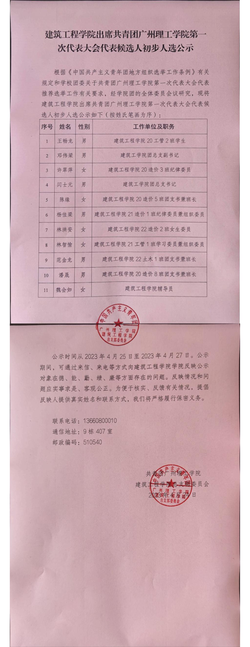 伟德国际1946bv官网出席共青团bevictor1946韦德官网第一次代表大会代表候选人初步人选公示