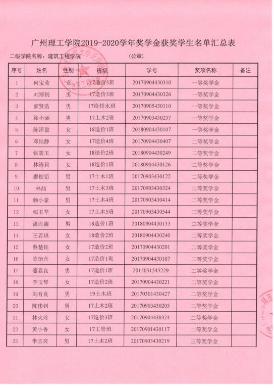 伟德国际1946bv官网2019-2020学年奖学金获奖名单公示