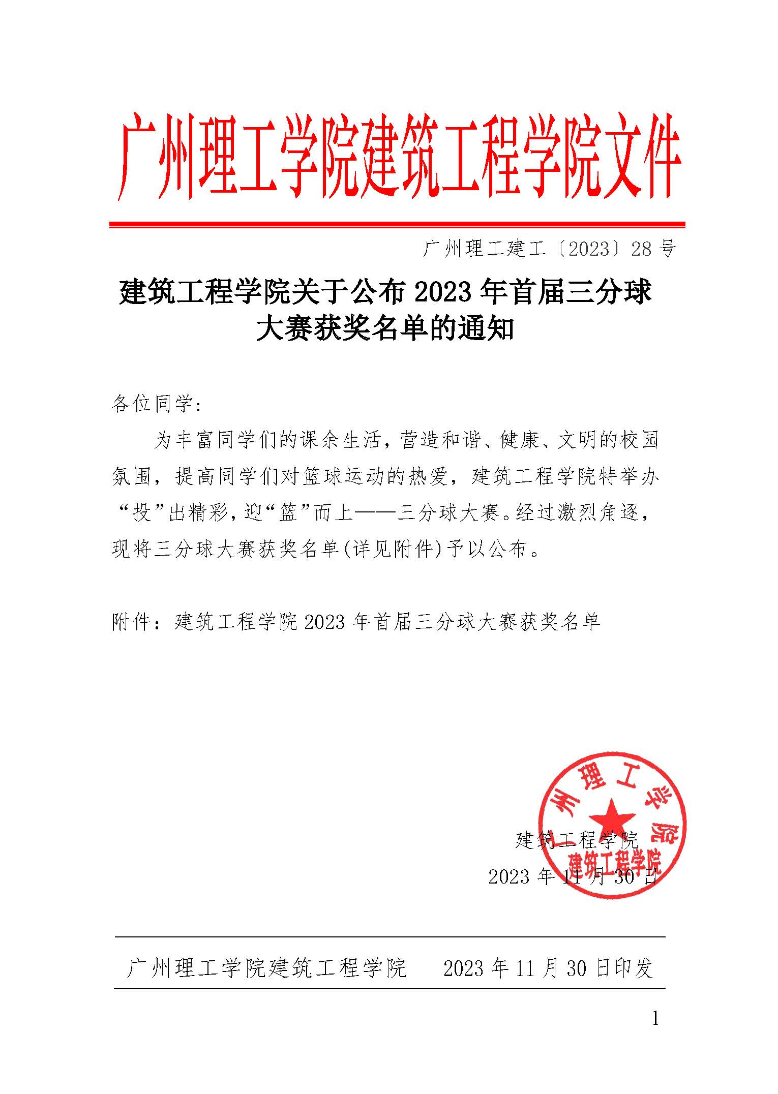 广州理工建工〔2023〕28号-伟德国际1946bv官网关于公布2023年首届三分球大赛获奖名单的通知