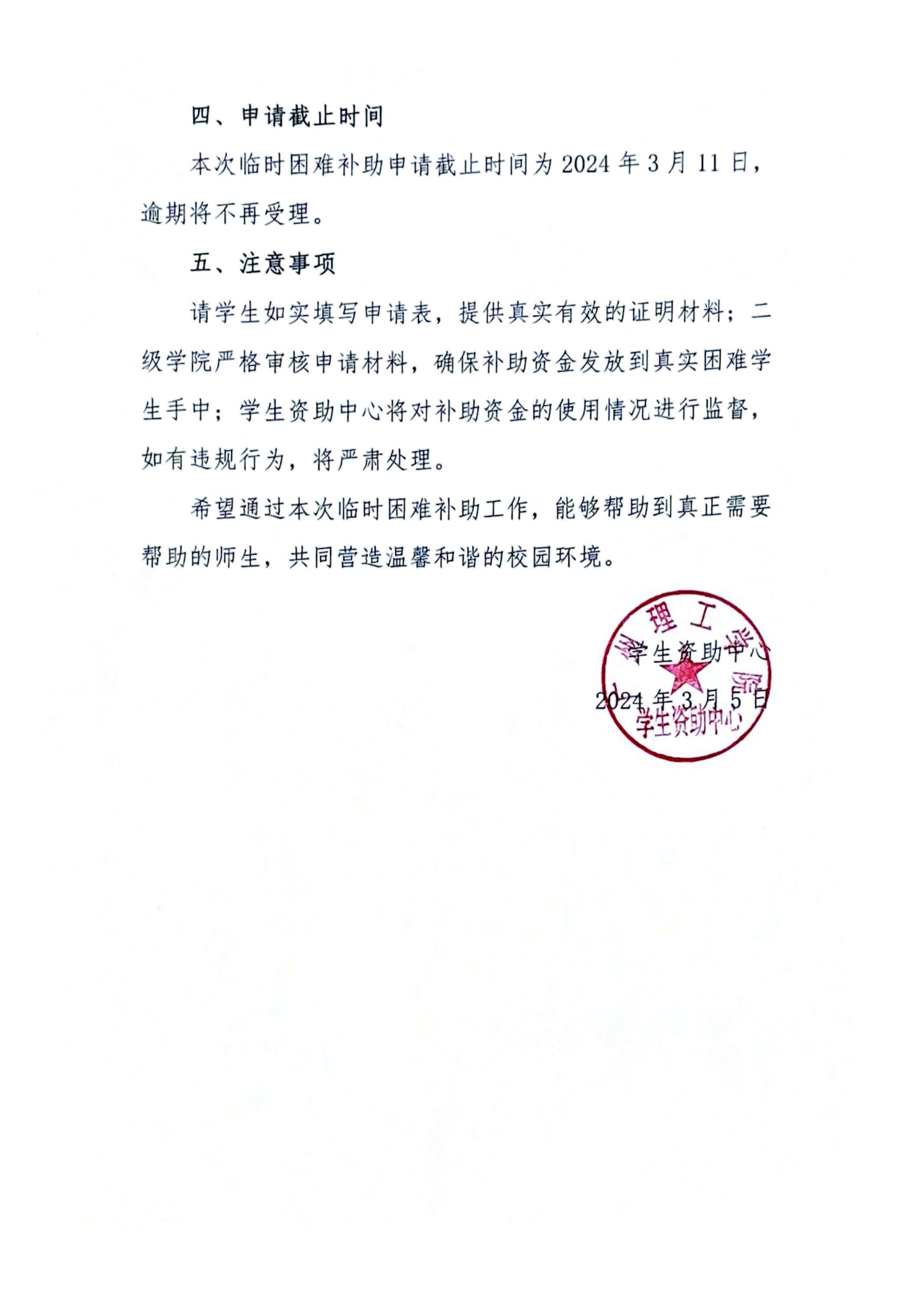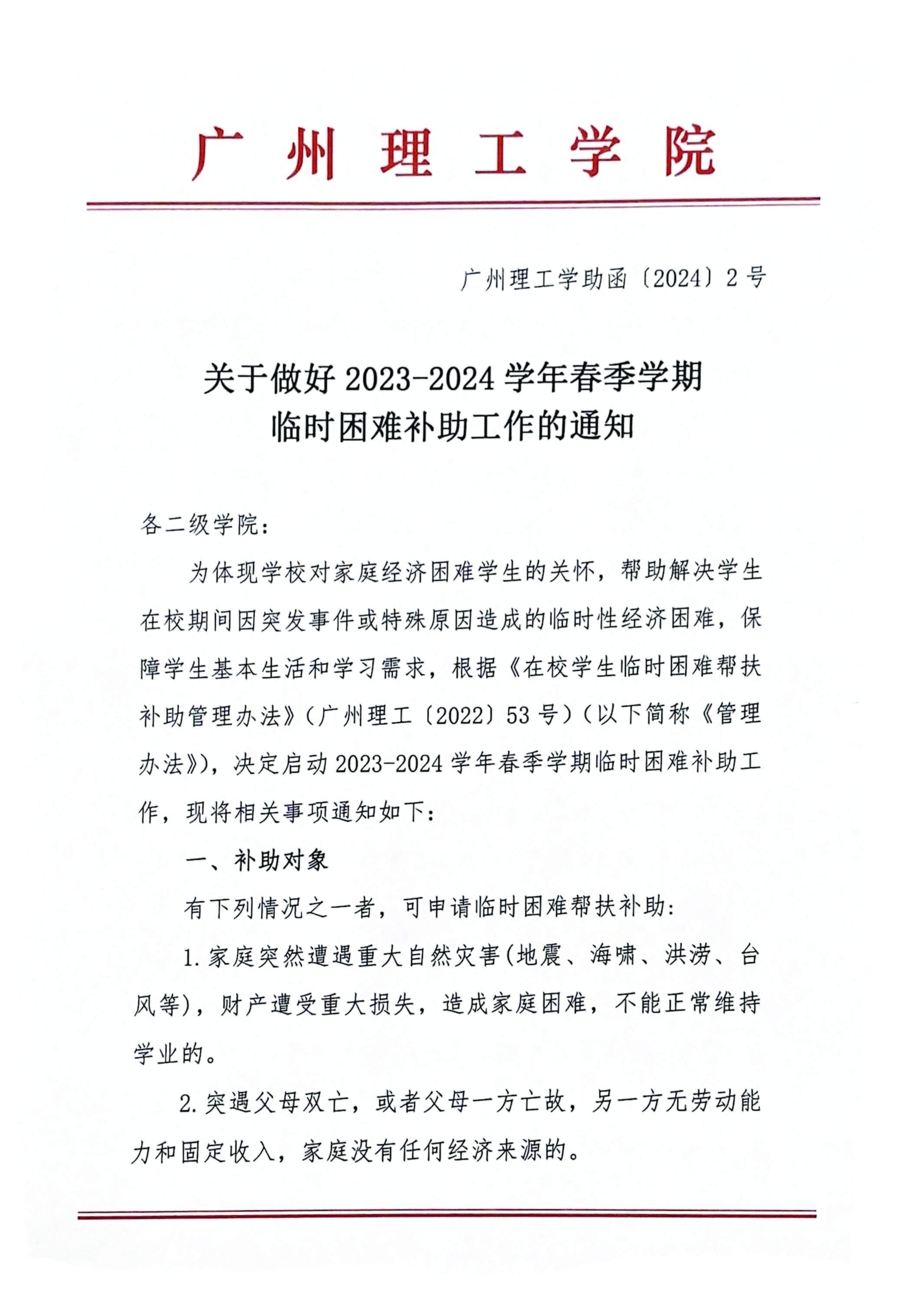 关于做好2023-2024学年春季学期临时困难补助工作的通知