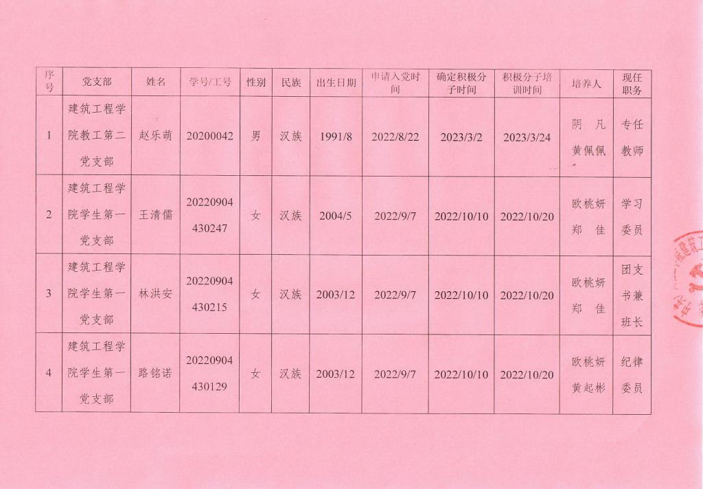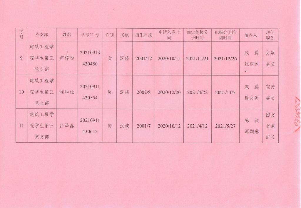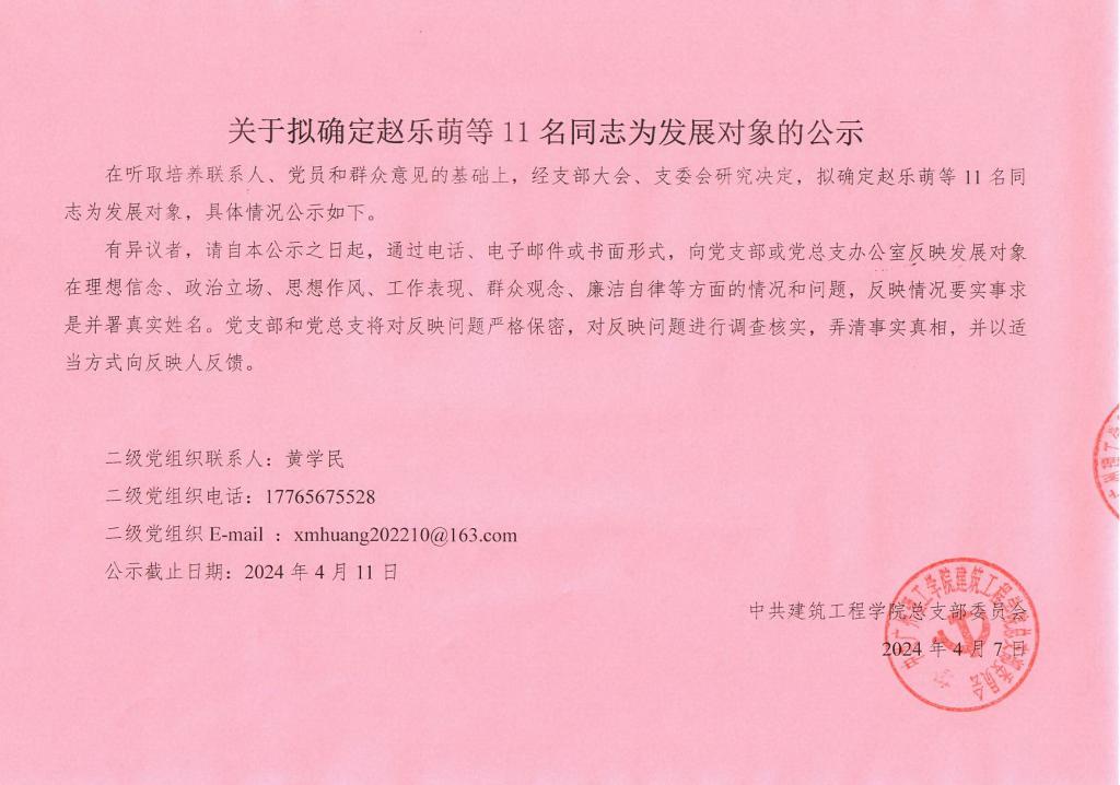 关于拟确定赵乐萌等 11 名同志为发展对象的公示